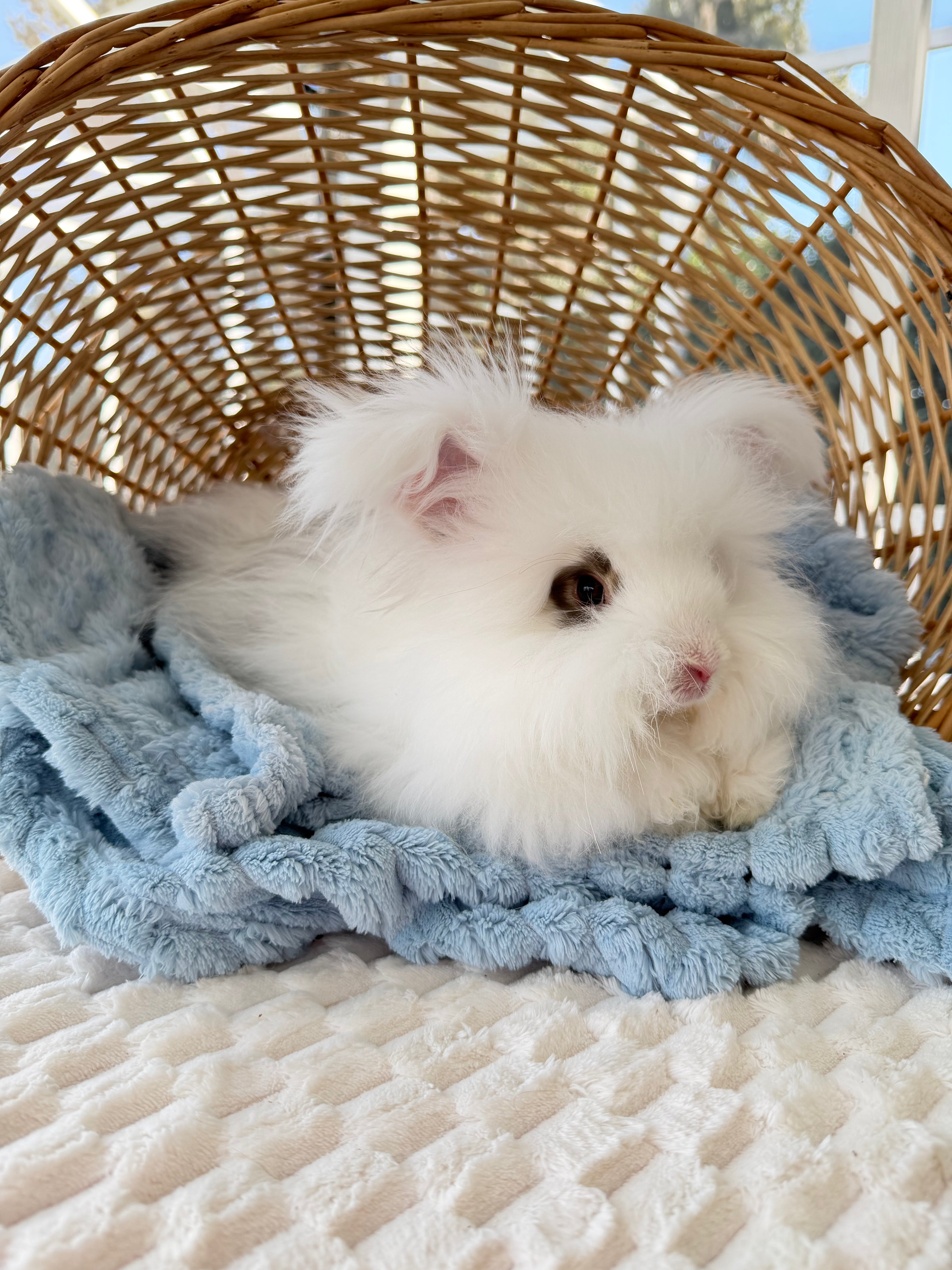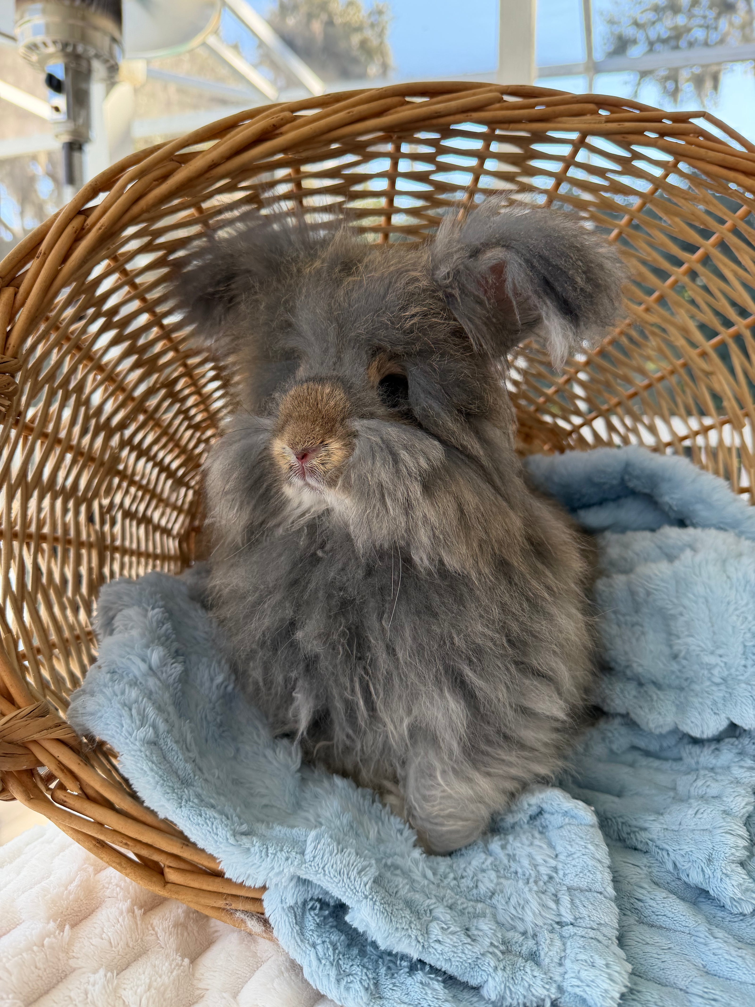 English Angoras are known for their sweet personalities and luxurious wool. They do require routine grooming, so we are looking for a loving, prepared home committed to regular coat maintenance and attentive care.